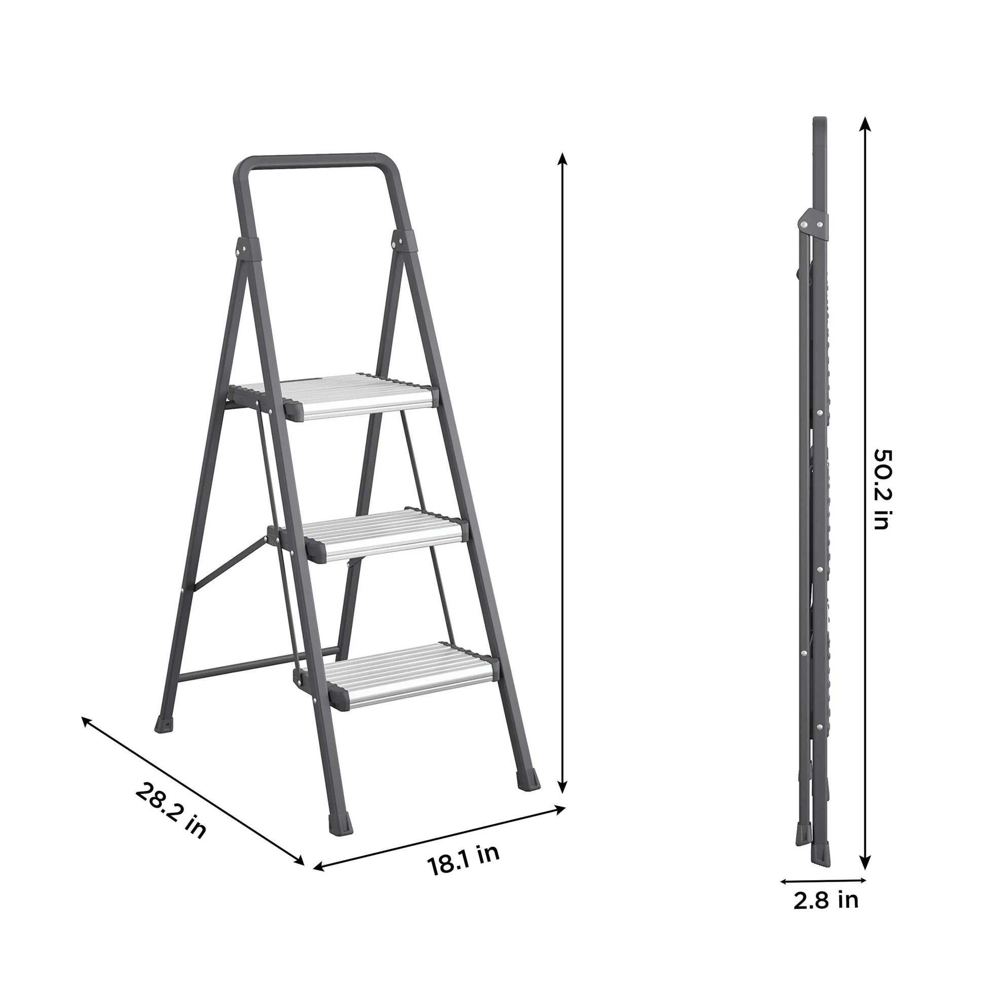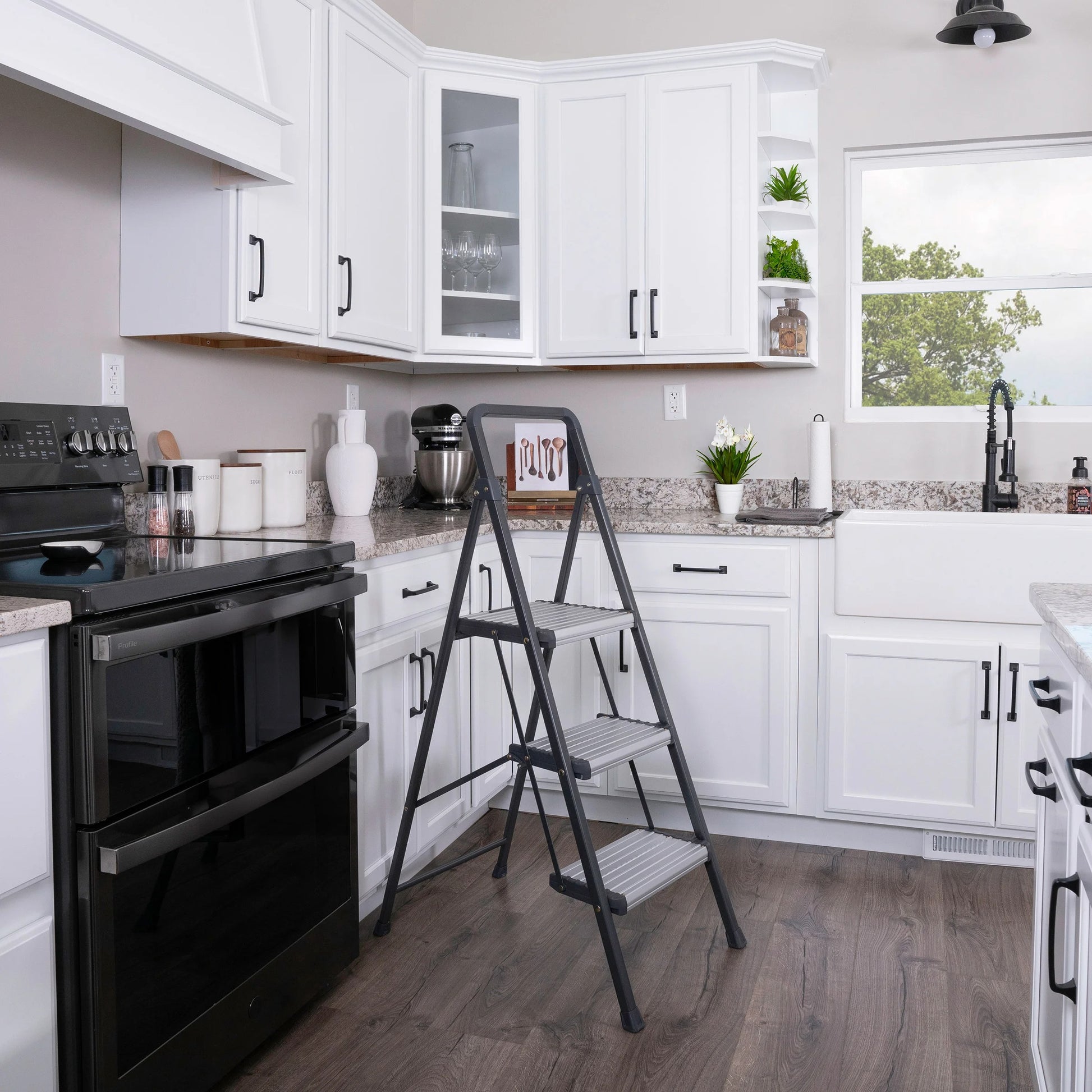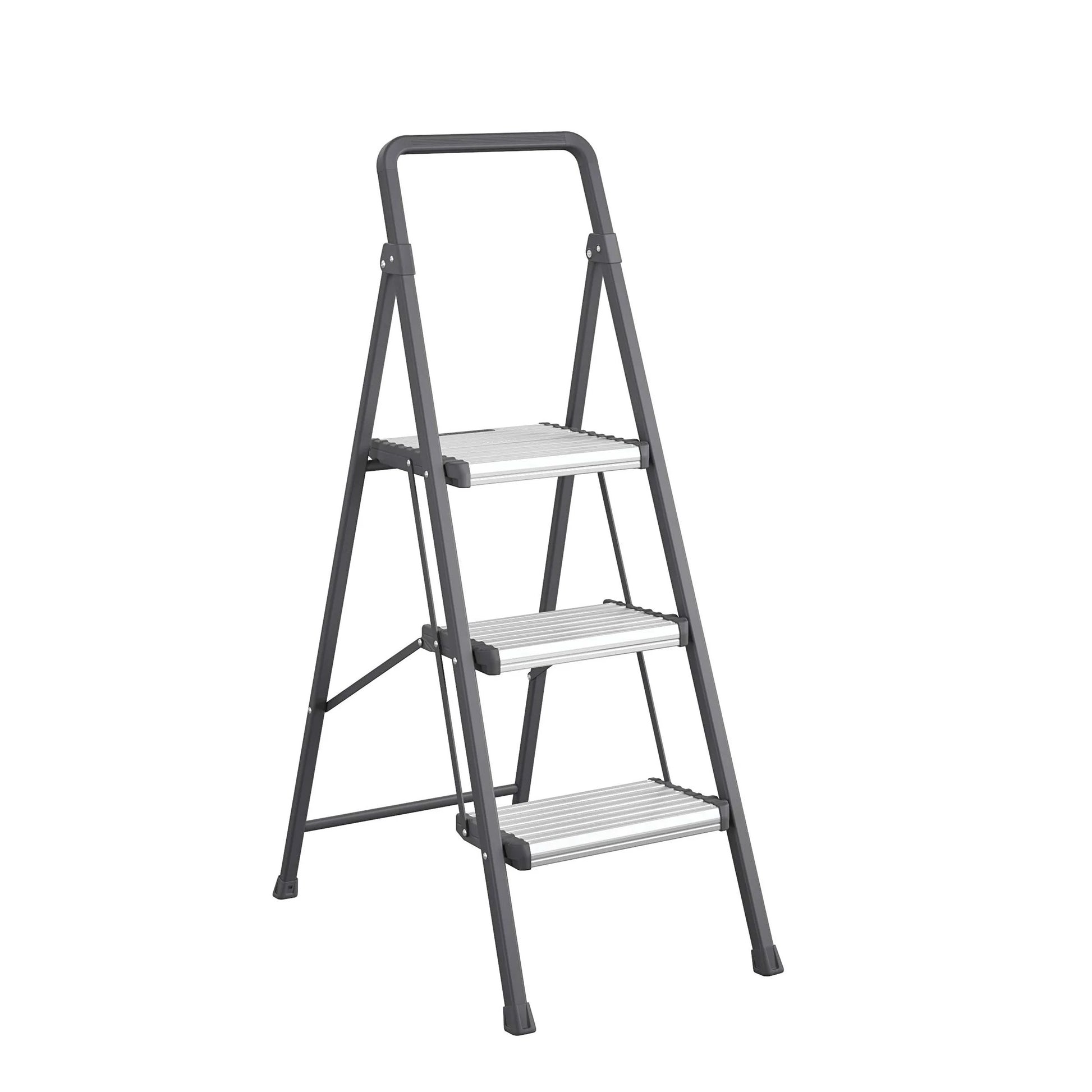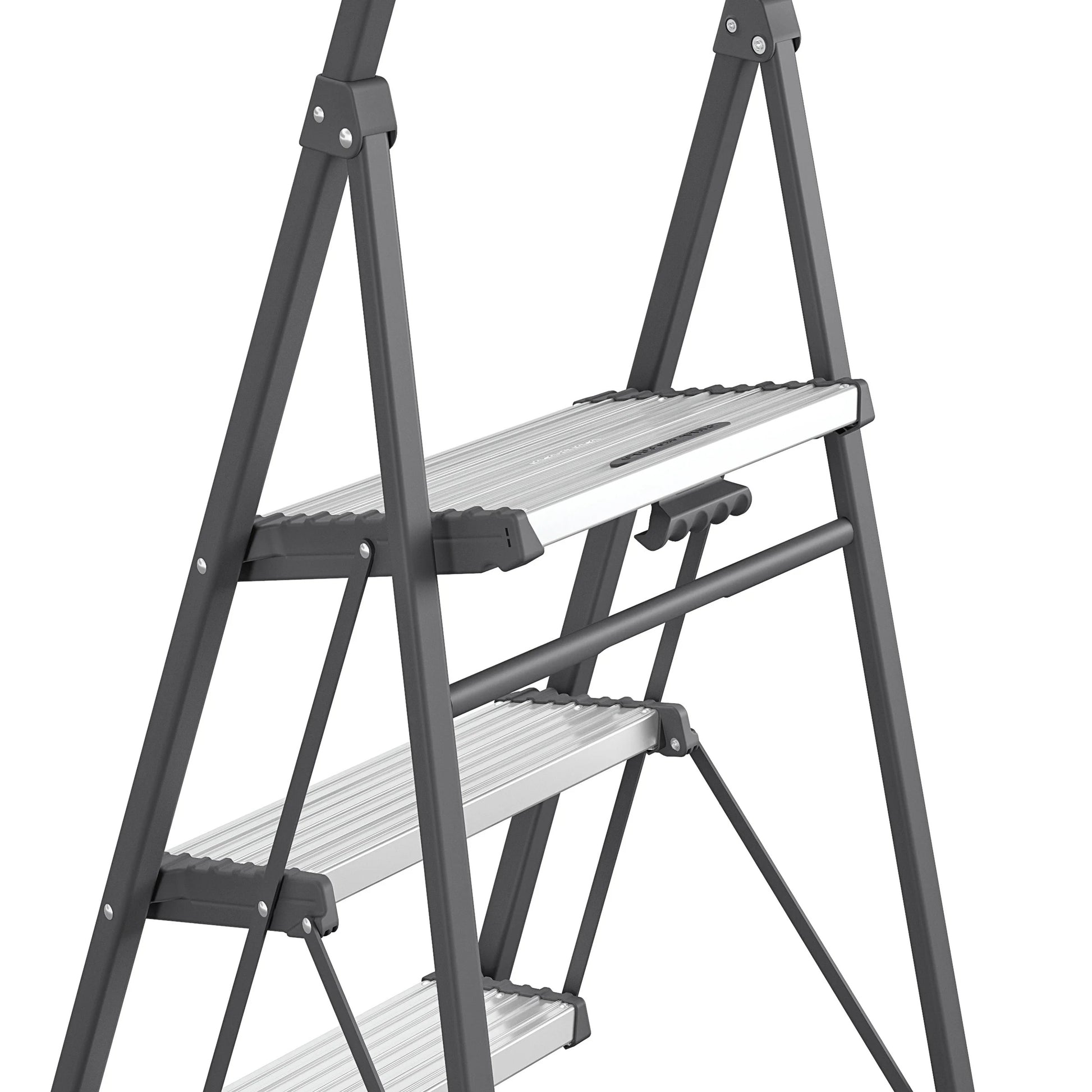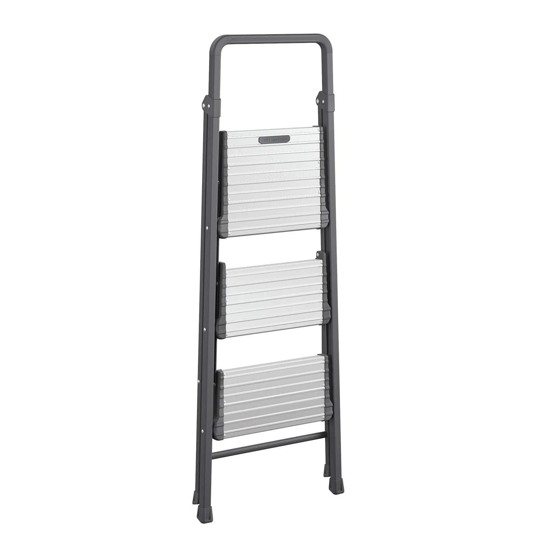 Transform your home tasks with ease and confidence using the COSCO Three Step Folding Step Stool. A modern style, weighing just 10.5 pounds, this lightweight step stool is easy to carry and handle. Its large platform provides a secure and stable surface for working on the top step, while the one-hand release mechanism allows you to effortlessly fold and unfold the stool for convenient storage. The non-marring leg tips protect your floor surfaces from scratches and scuffs, and the durable steel frame ensures strength for any household chore. With an ANSI Type 1 rating, this step stool supports up to 250 pounds, meeting high safety standards.
