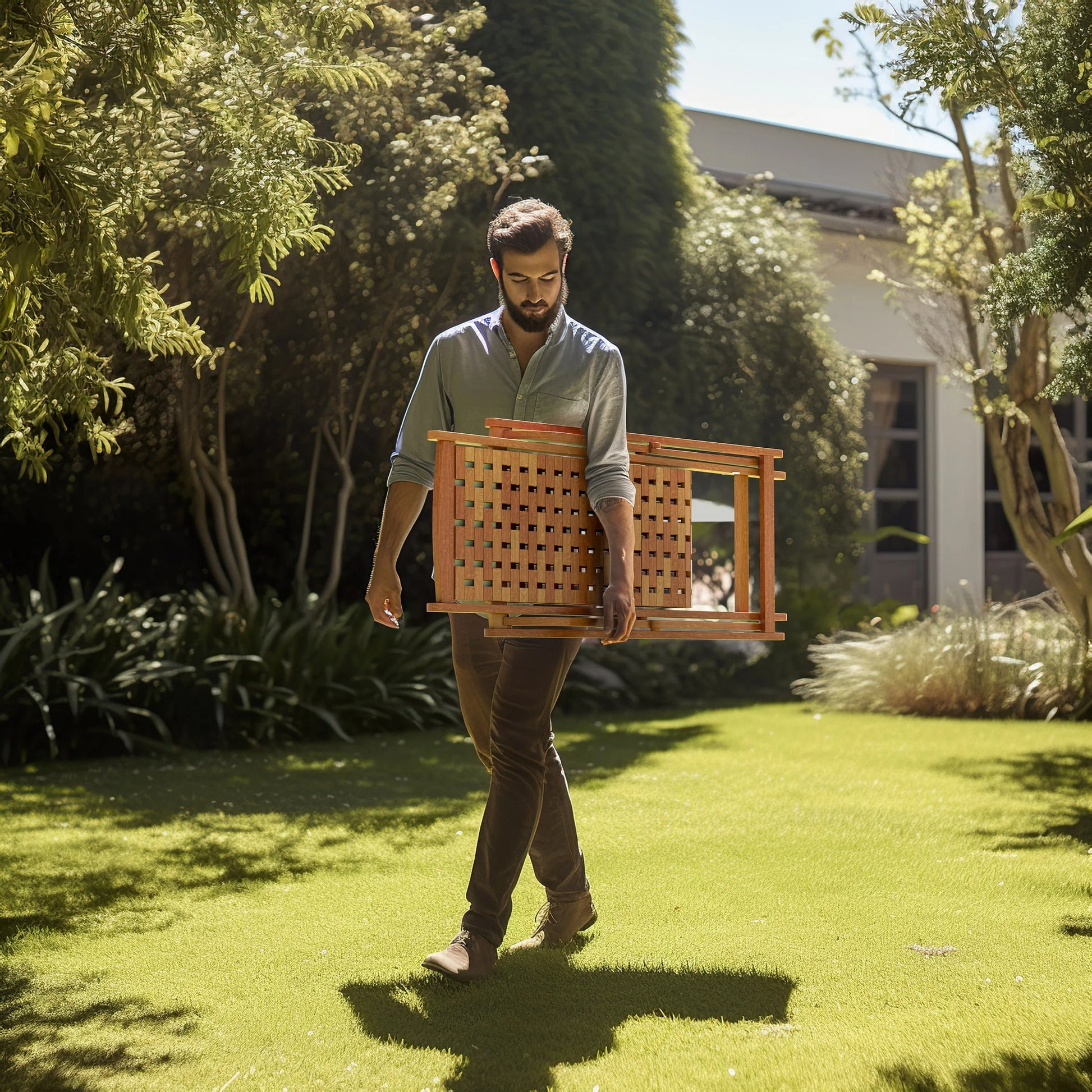 - Eucalyptus wood folding side table: 17.7in x 17.7in x 17.7in