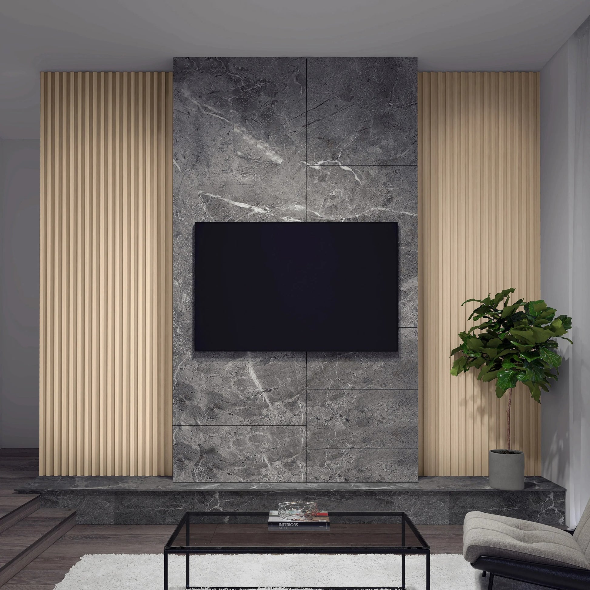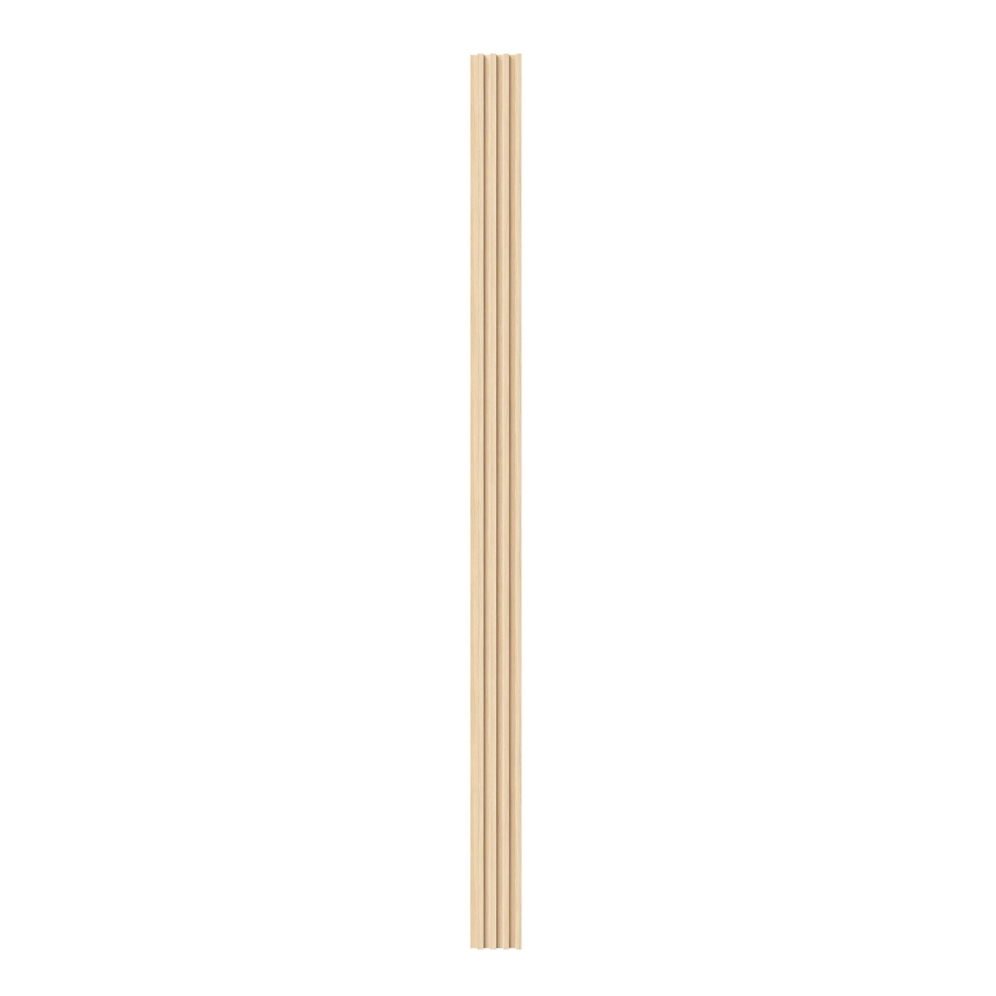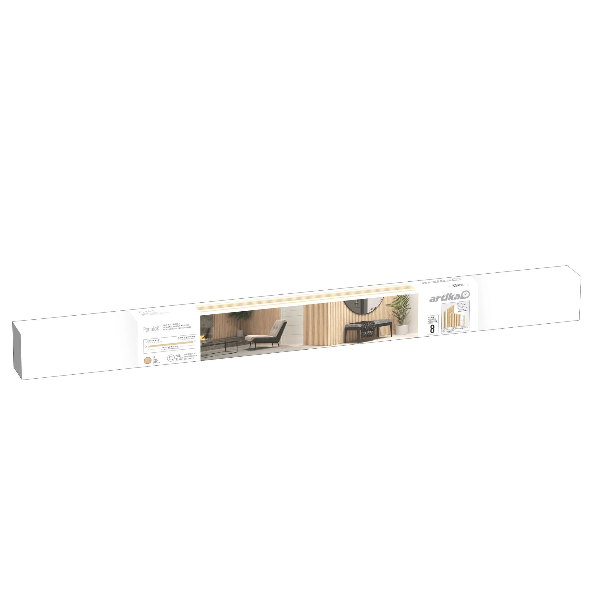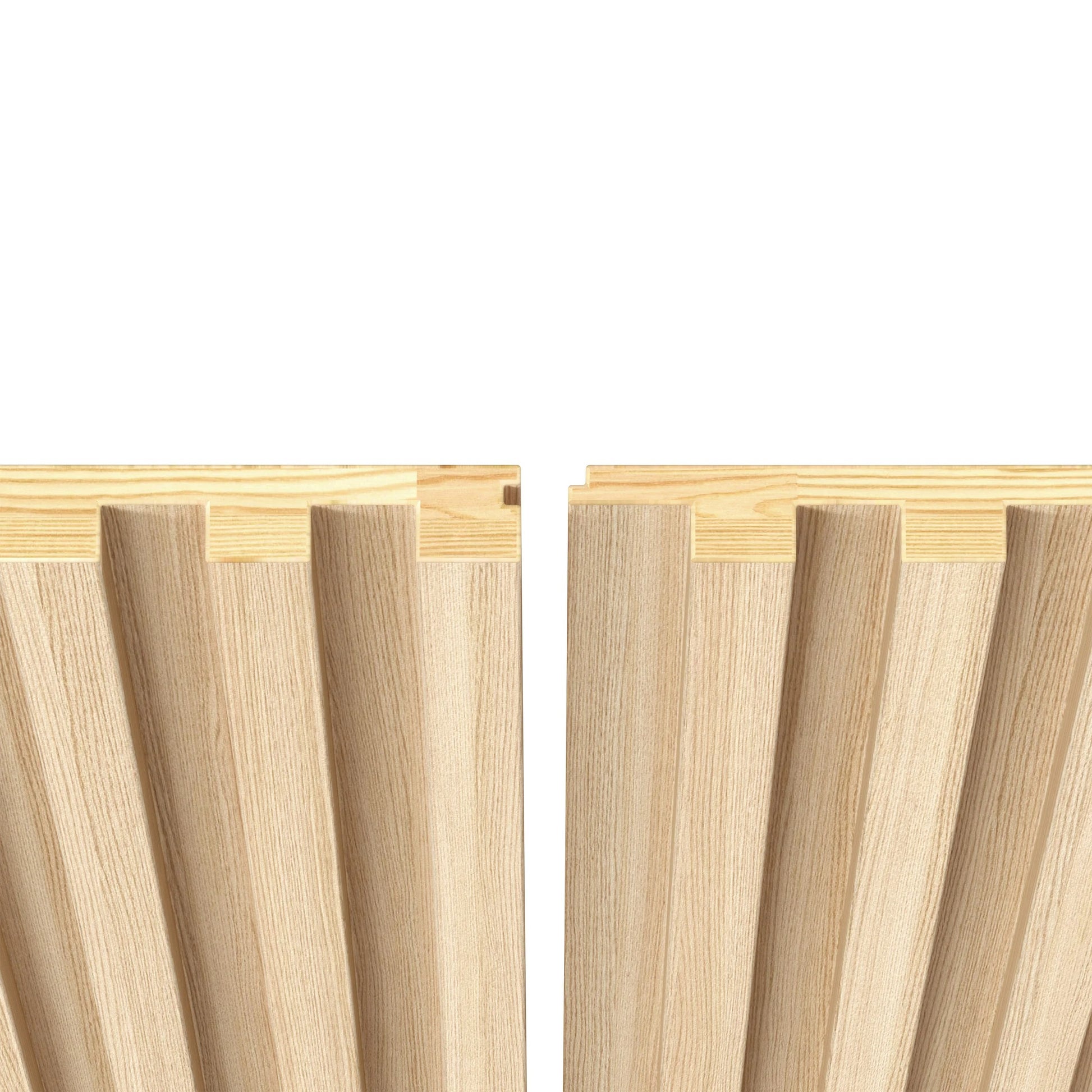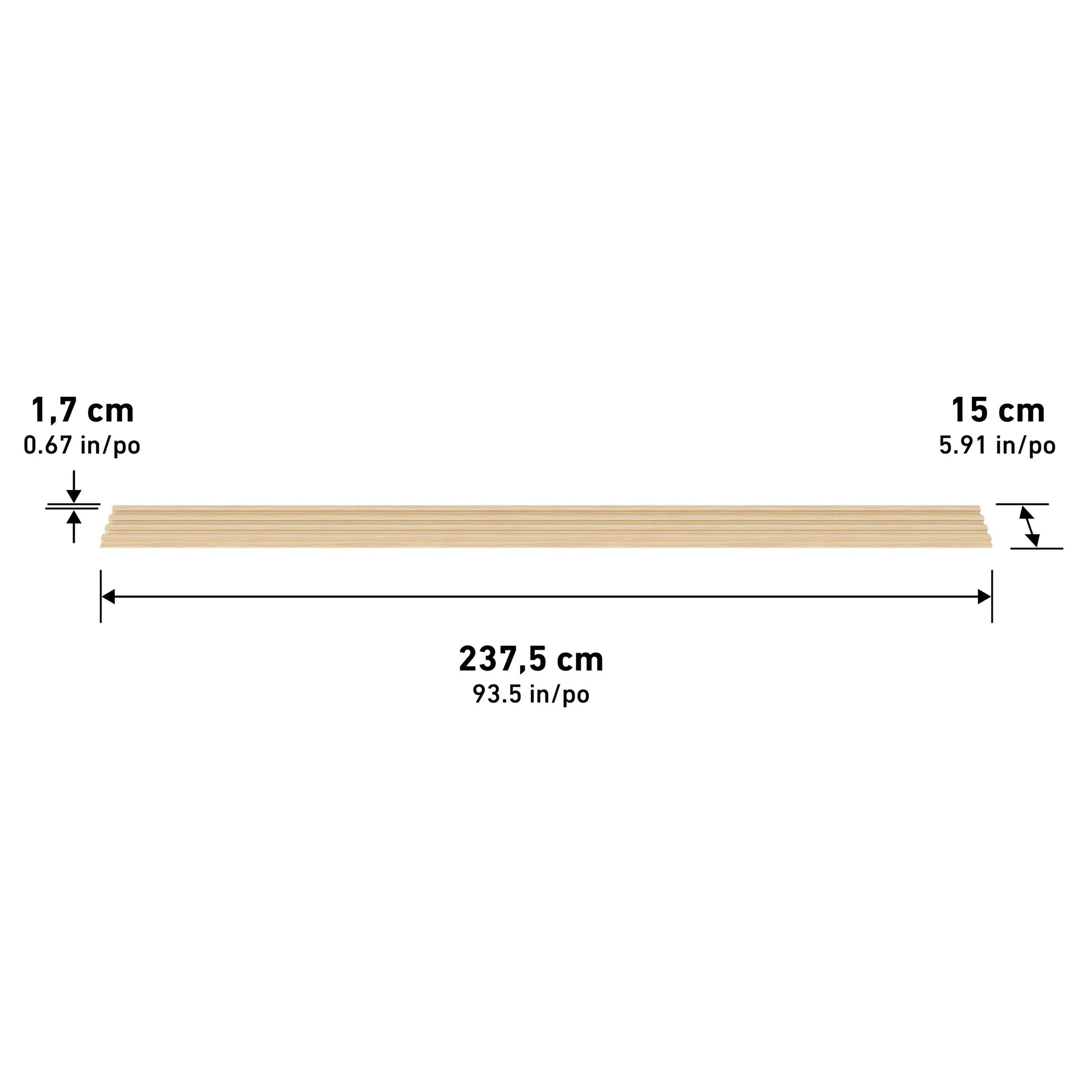 Designed to accentuate any wall, these panels draw attention, whether placed behind a bed, in a living room, or against a console. Crafted from pine and reinforced with a PVC layer, their rich walnut hue melds seamlessly with diverse colour schemes and can be painted to fit specific aesthetics. Each package contains eight panels spanning 30.67 sq. ft. (2.85 m²). Two end caps and a corner cap are included to ensure a refined touch.