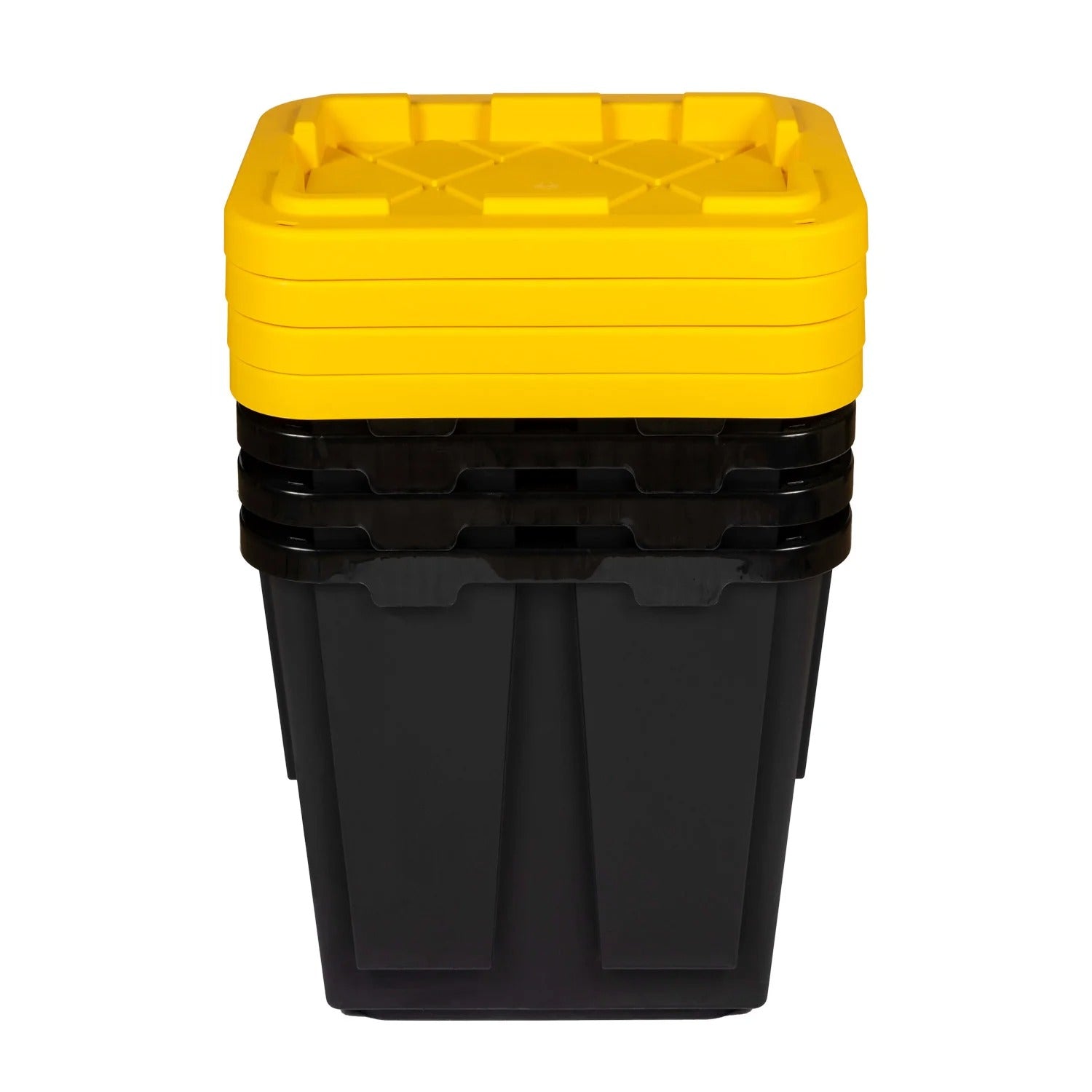 Designed for both space-saving and durability, the recessed lid enables stable stacking, and the tapered sides allow bins to nest neatly when not in use. A snap-on lid ensures your items stay securely contained, with built-in keyhole slots that accept padlocks or zip ties for added protection. Integrated tie-down grooves make these bins transport-ready, whether you're moving supplies, loading a truck, or securing items on shelving. With a versatile 12-gallon capacity and rugged design, this storage solution offers a perfect balance of strength, convenience, and food-safe performance in a compact footprint.