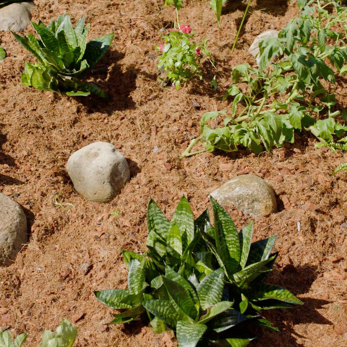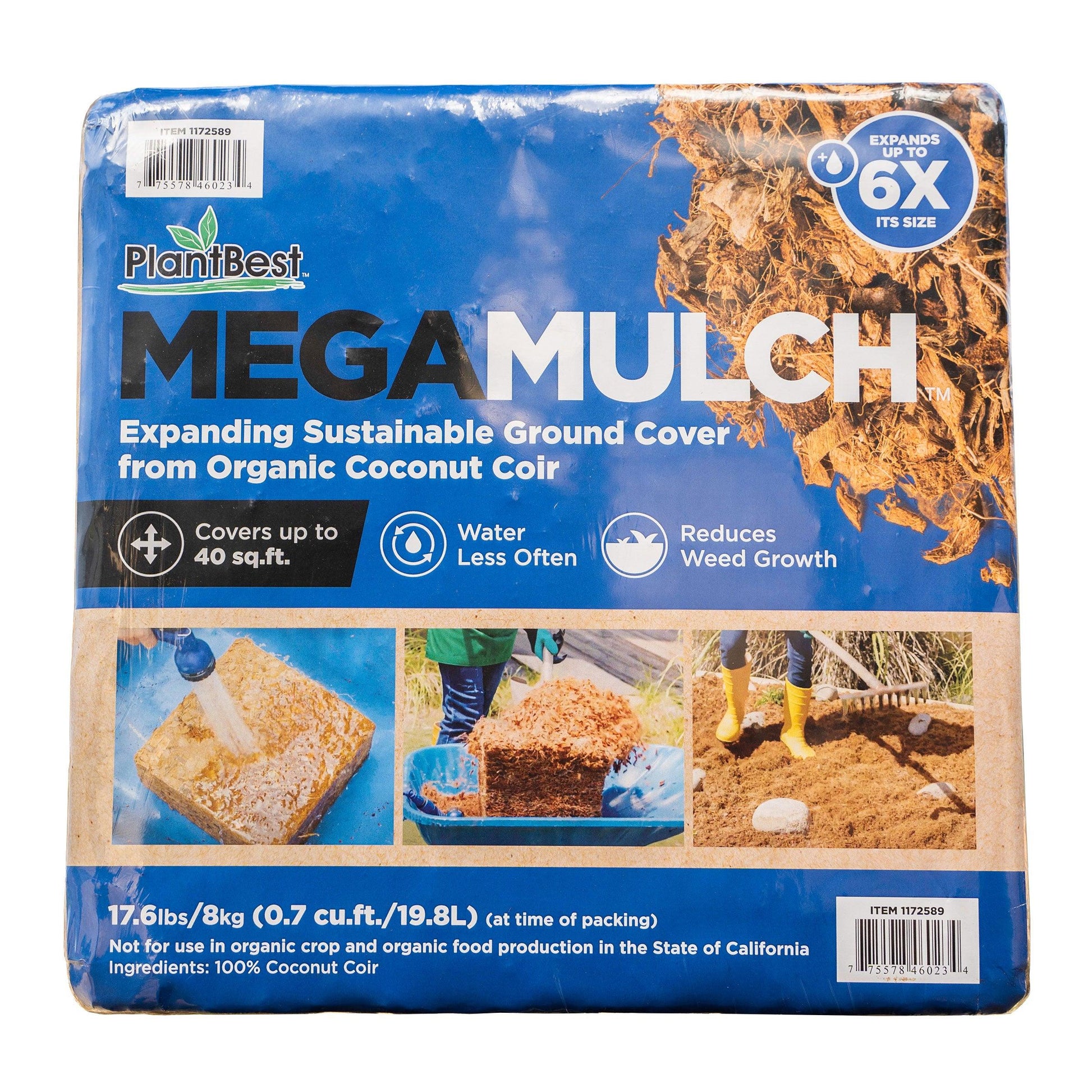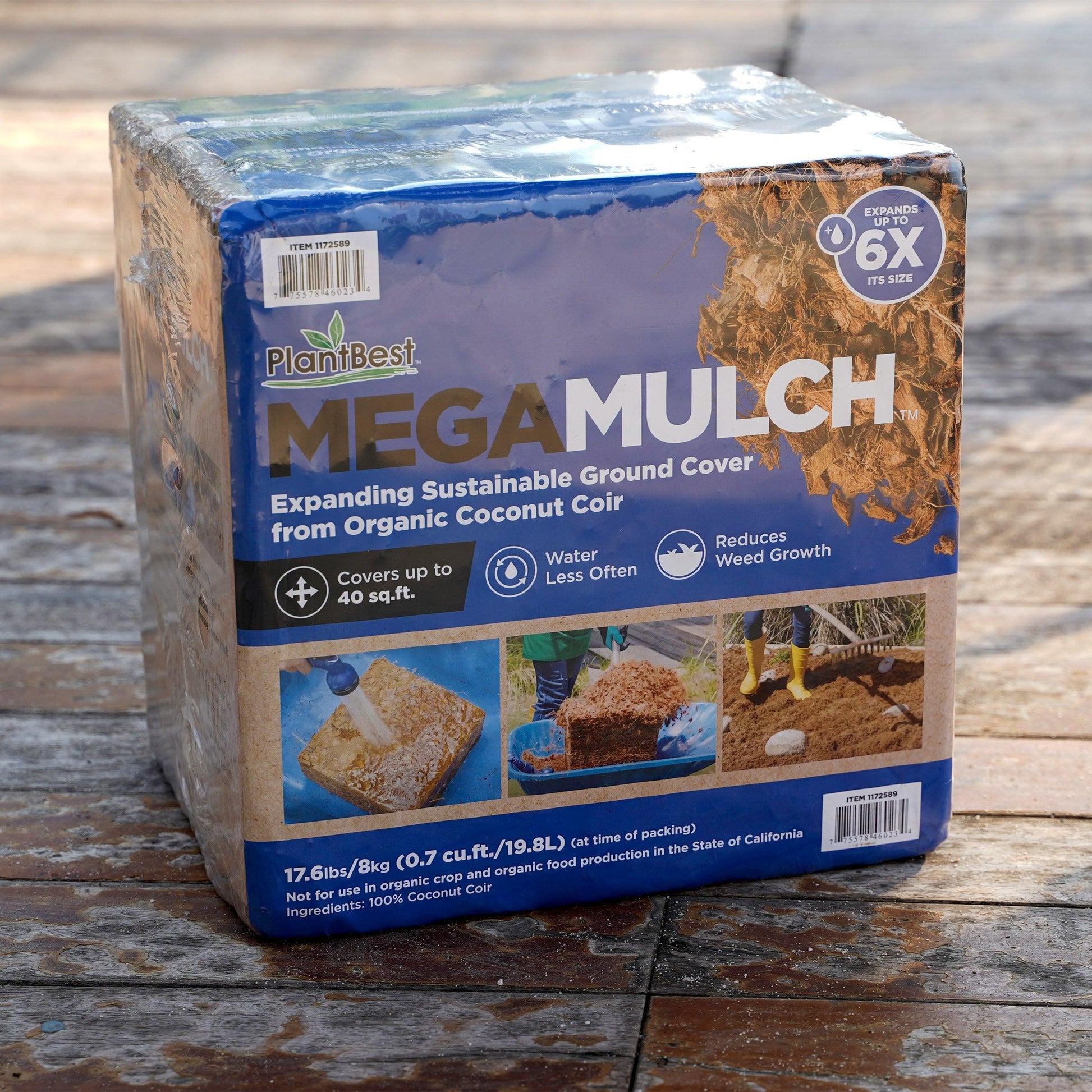 A natural alternative to traditional bark and mulches, MegaMulch is made from sustainable and renewable coconut husks. Once hydrated, the coconut coir fiber forms a netting effect between the chunks of husks creating a blanket of protection against weeds and allowing the soil to retain more water.