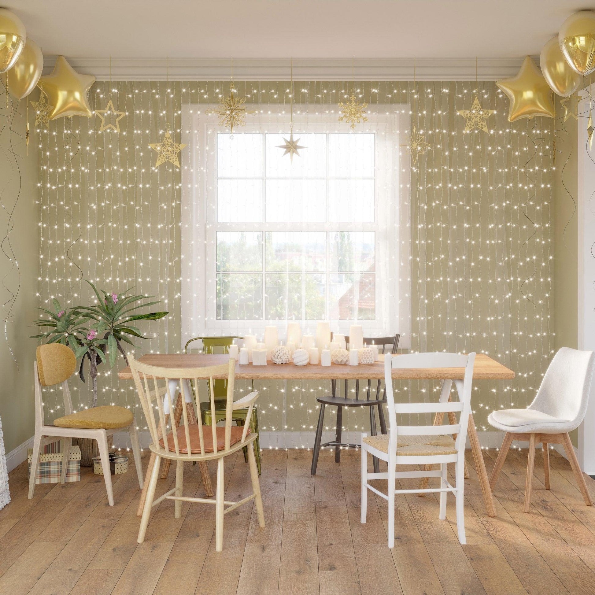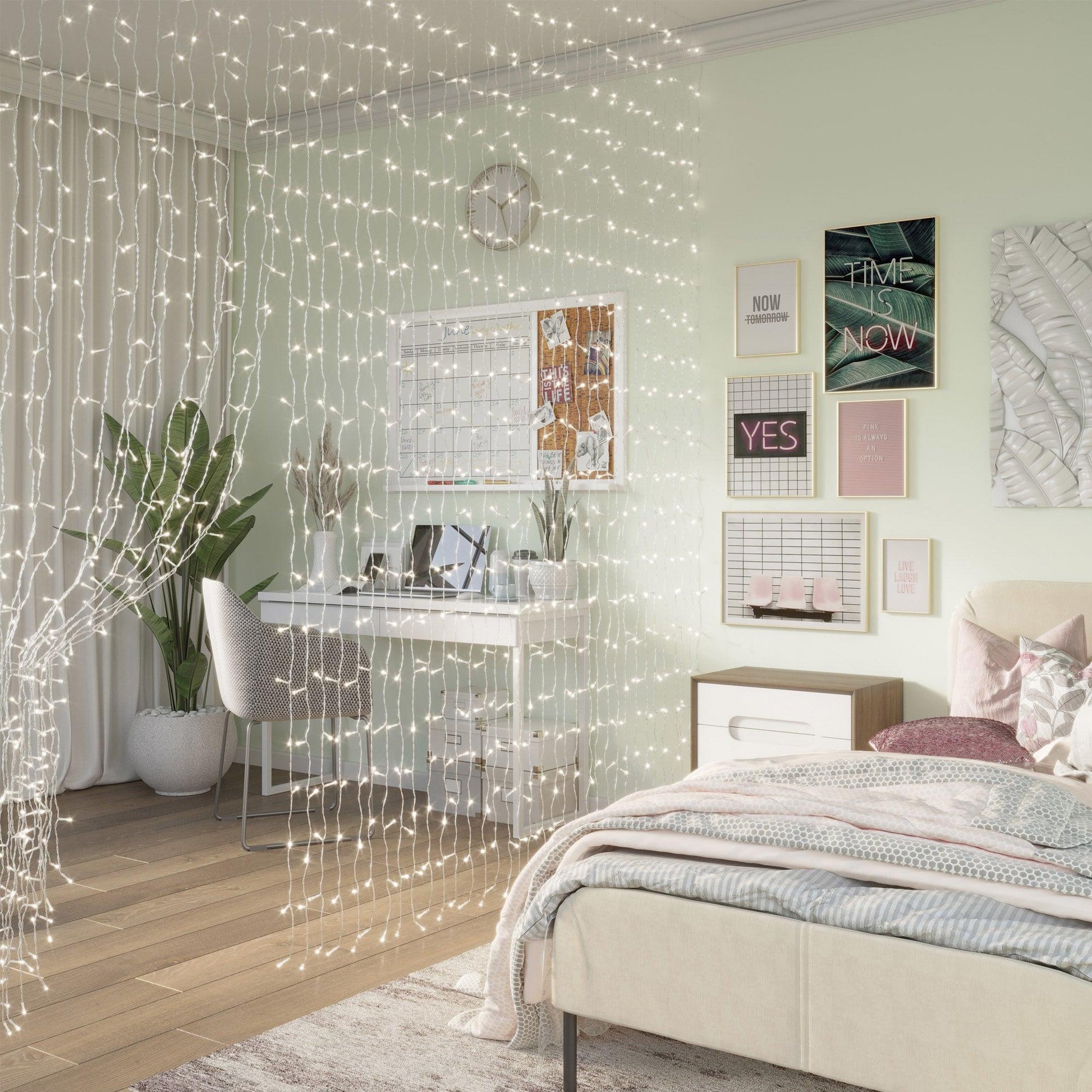 From a soft romantic glow to festive cheer, the Waterfall curtain LED string lights by OVE Decor are ready to set the scene for your interior decoration, as a feature wall or room separator, as well in your children's and teen's room or at your next event. These easy to hang fairy lights come in a 3 m (10 ft.) length with 1200 small warm white LED bulbs that are beautiful when lit, each transparent strand cascading 3 m (10 ft.) downwards or swooping dramatically aside.
