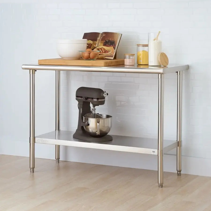 TRINITY NSF Prep/Work Table with Adjustable Shelf, 48"L x 24"W x 34-36"H, Stainless Steel