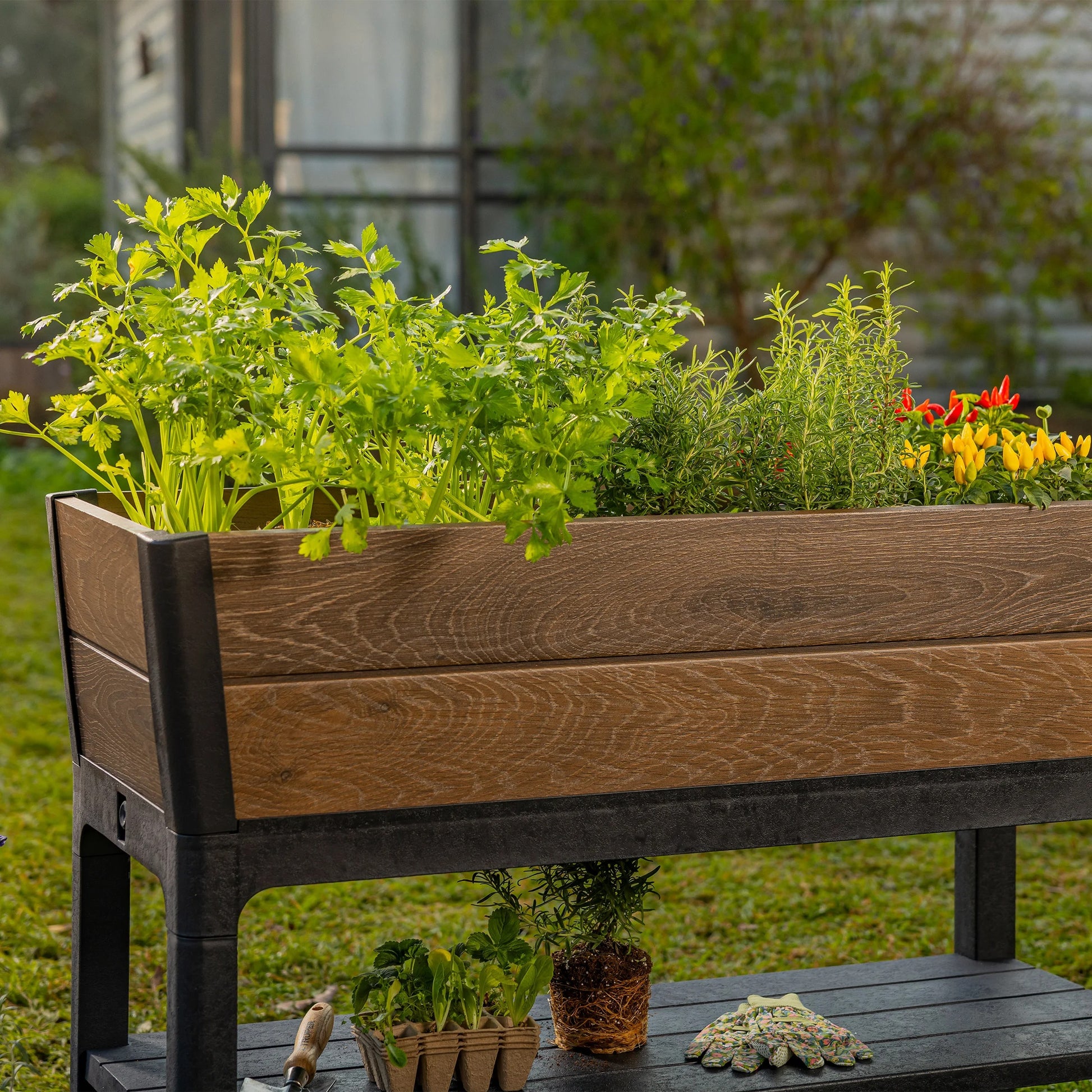 Transform your gardening experience with the Keter Signature Collection elevated garden bed. You don’t need to live in the countryside to savor fresh produce and herbs. Whether you aim to become more self-sufficient, reduce your grocery expenses, or simply enjoy the flavor of freshly picked fruits and vegetables, this planter makes it easy to connect with nature, no matter if you’re in the suburbs or the city. Not only is this planter practical, but it also brings a touch of elegance to your outdoor area. It offers ample space to cultivate your favorite ingredients for juices or smoothies while being compact enough to fit perfectly with your patio furniture and grill.
